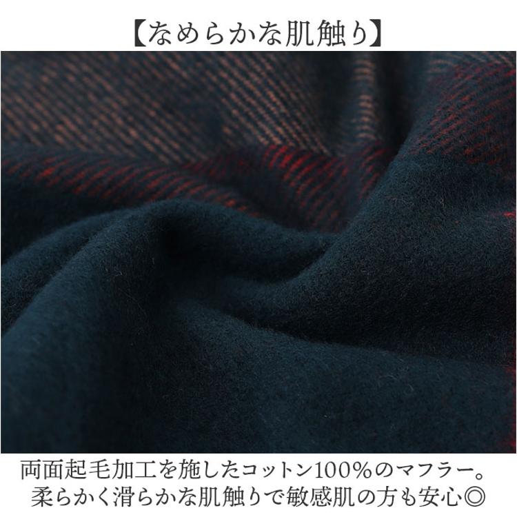 ・両面起毛加工を施したコットン100%のマフラー。