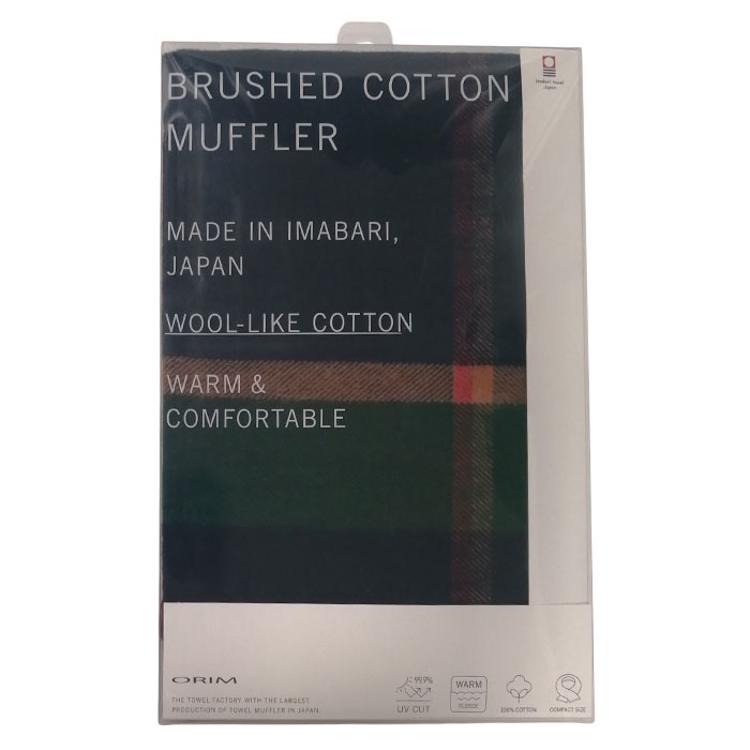 今治タオル コットン マフラー 冬 通販 日本製 チェックマフラー タオルマフラー チェック ストール 綿100% コットン100 首巻き 頚巻 衿巻 襟巻 オリム ORIM XA-3200 おしゃれ 起毛コットン 敏感肌 防寒 秋冬 レディースマフラー