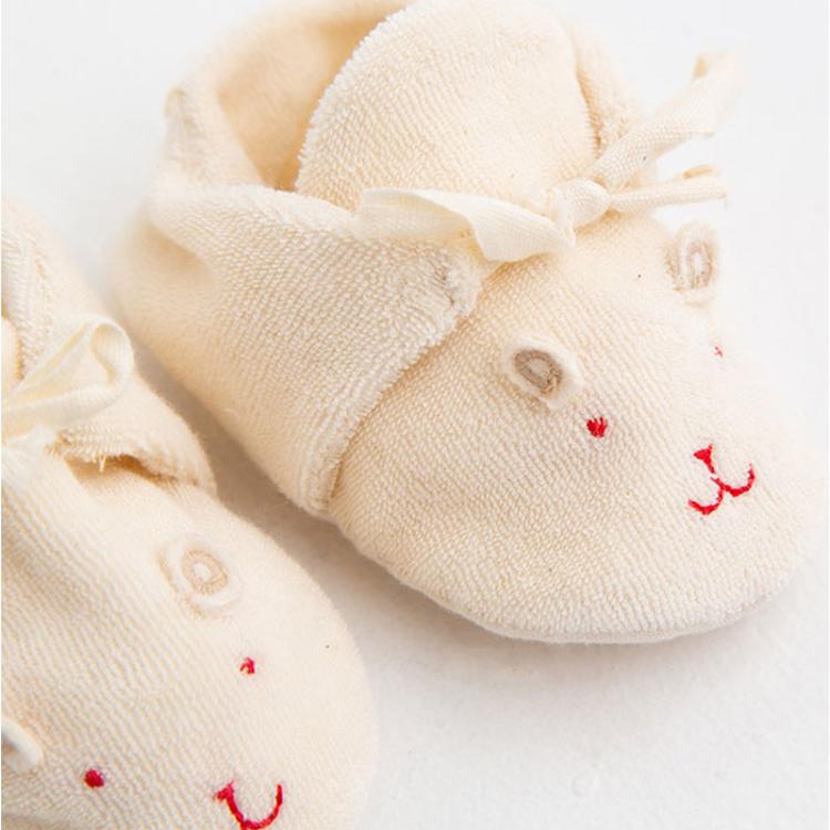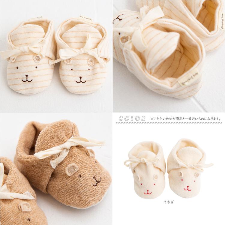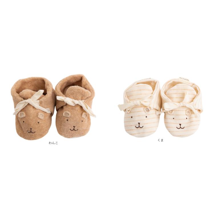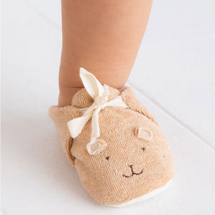 ・赤ちゃんが初めて履く靴♪室内での歩く練習に最適な柔らか素材で、愛らしいお顔の刺繍入り♪