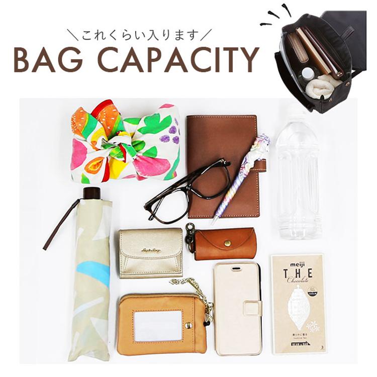 ・メイン収納スペースには、B5サイズのノートや長財布・ペットボトルなど通勤・通学に必要な小物がたっぷりと収納可能。マチはたっぷり約10cmで、コンパクトな見た目以上の収納力!