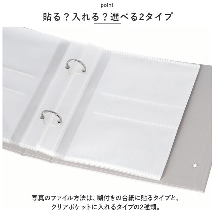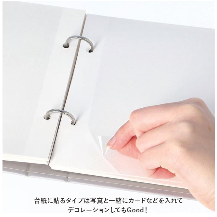 ・写真のファイル方法は、糊付きの台紙に貼るタイプと、クリアポケットに入れるタイプの2種類。台紙に貼るタイプは写真と一緒にカードなどを入れてデコレーションしてもGood!クリアポケットタイプは気軽に出し入れできて◎チェキのサイズに対応しているのも嬉しいポイント!
