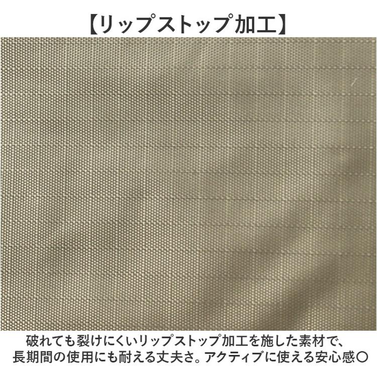 ・破れても裂けにくいリップストップ加工を施した素材で、長期間の使用にも耐える丈夫さ。アクティブに使える安心感〇
