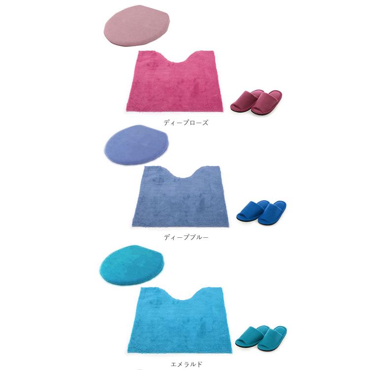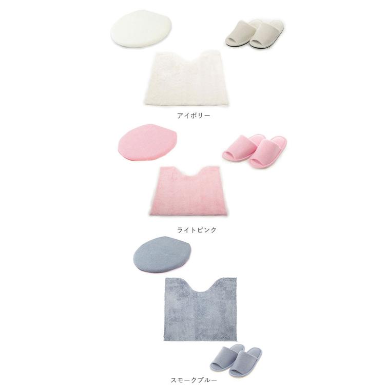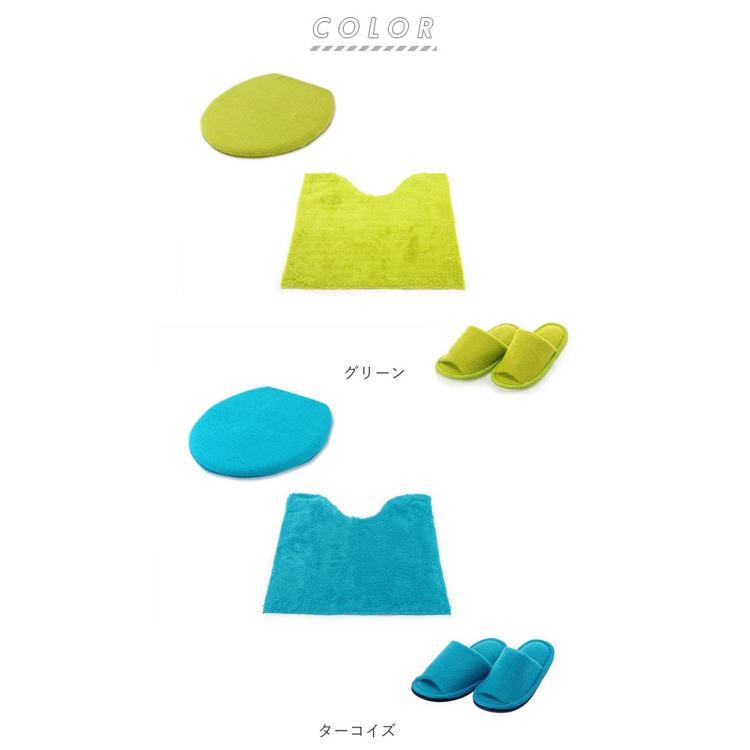 ・トイレ足元マットはふかふかのアクリル素材、フタカバーのパイル糸にも100%アクリル素材を使用。どちらも洗濯ネットに入れて、簡単にお洗濯が可能!水洗いがOKのスリッパもお手入れラクチンでいつも清潔!
