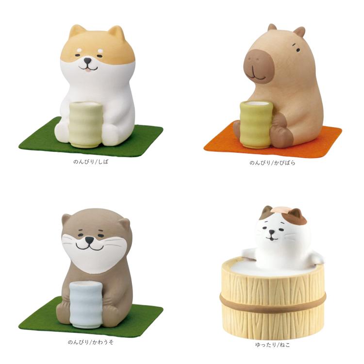 ・お風呂につかる「ゆったり」とお茶タイムの「のんびり」シリーズで、アロマオイルを垂らして使える陶製マスコット◎※のんびりシリーズのみフェルトマットが付属しています。