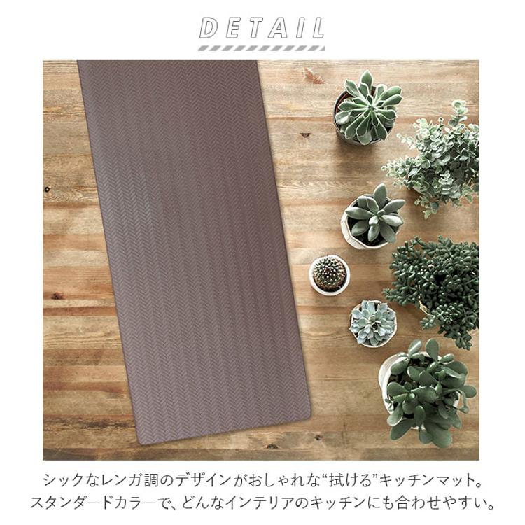 商品説明・シックなレンガ調のデザインがおしゃれな“拭ける”キッチンマット。落ち着いた色調のスタンダードカラーで、どんなインテリアのキッチンにも合わせやすい。