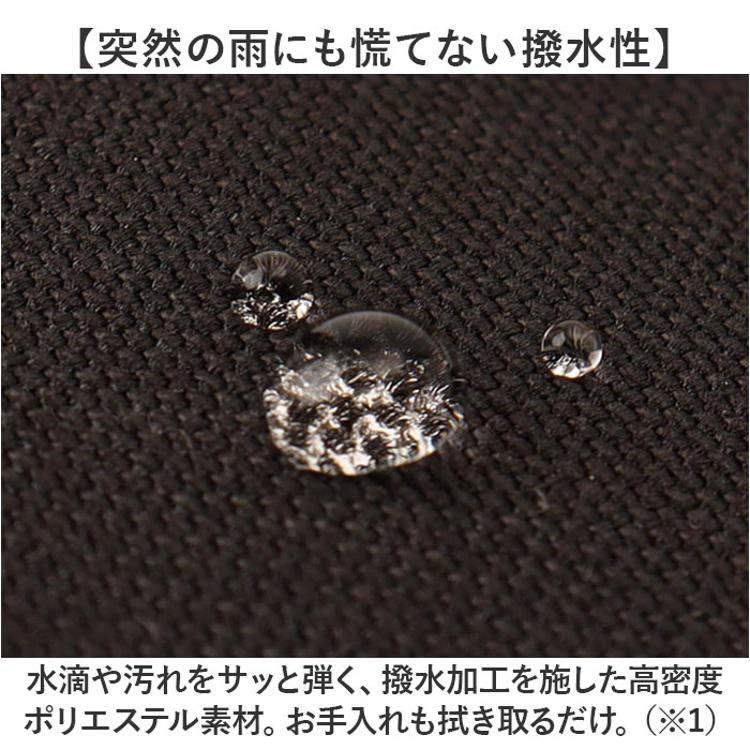 ・水滴や汚れをサッと弾く、撥水加工を施した高密度ポリエステル素材。お手入れも拭き取るだけ。