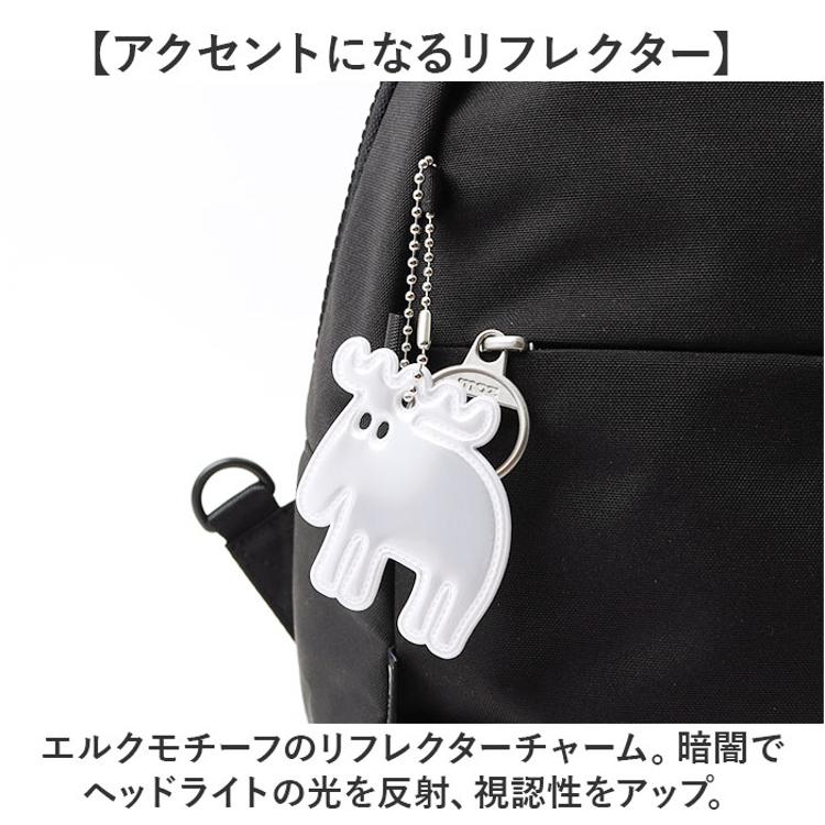 ・エルクモチーフのリフレクターチャーム。暗闇でヘッドライトの光を反射、視認性をアップ。