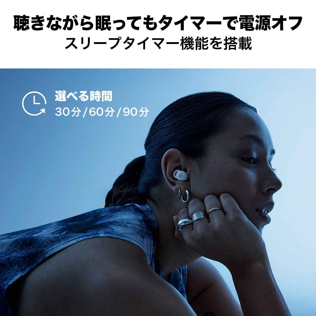 スリープタイマー機能を使えば、そのまま眠りに落ちても自動で電源がオフに。自然と心地よい深い眠りへ誘います。