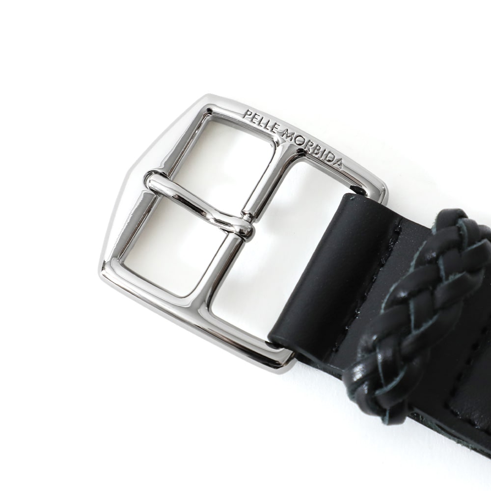 モルビダの美しい曲線を表現したオリジナルバックルもポイントです。劇的な経年変化はしないセミアニリン仕上げで、美しく上品な表面が特徴のレザーです。