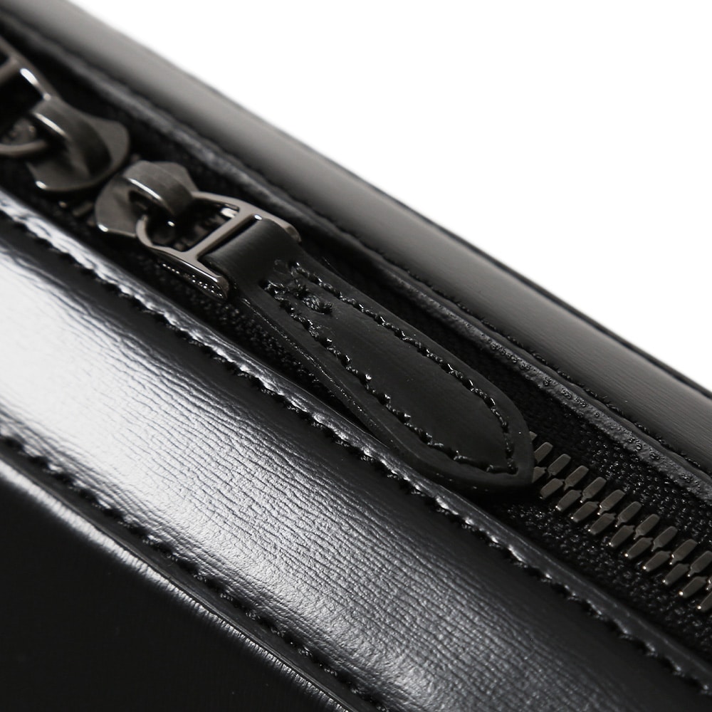 傷に強く、水にも耐性を持つガラスレザーを贅沢に採用したコレクション。従来のガラスレザーに見られる粉っぽさを排し、きめ細やかな水シボの表情が、まさにクラシックレザーの風格を物語ります。指先に心地よく伝わる繊細な凹凸は、素材の豊かさを五感で実感させ、持つ人の佇まいを一層引き立てます。上質を知る大人の男性を、より凛々しく魅せるための逸品です。