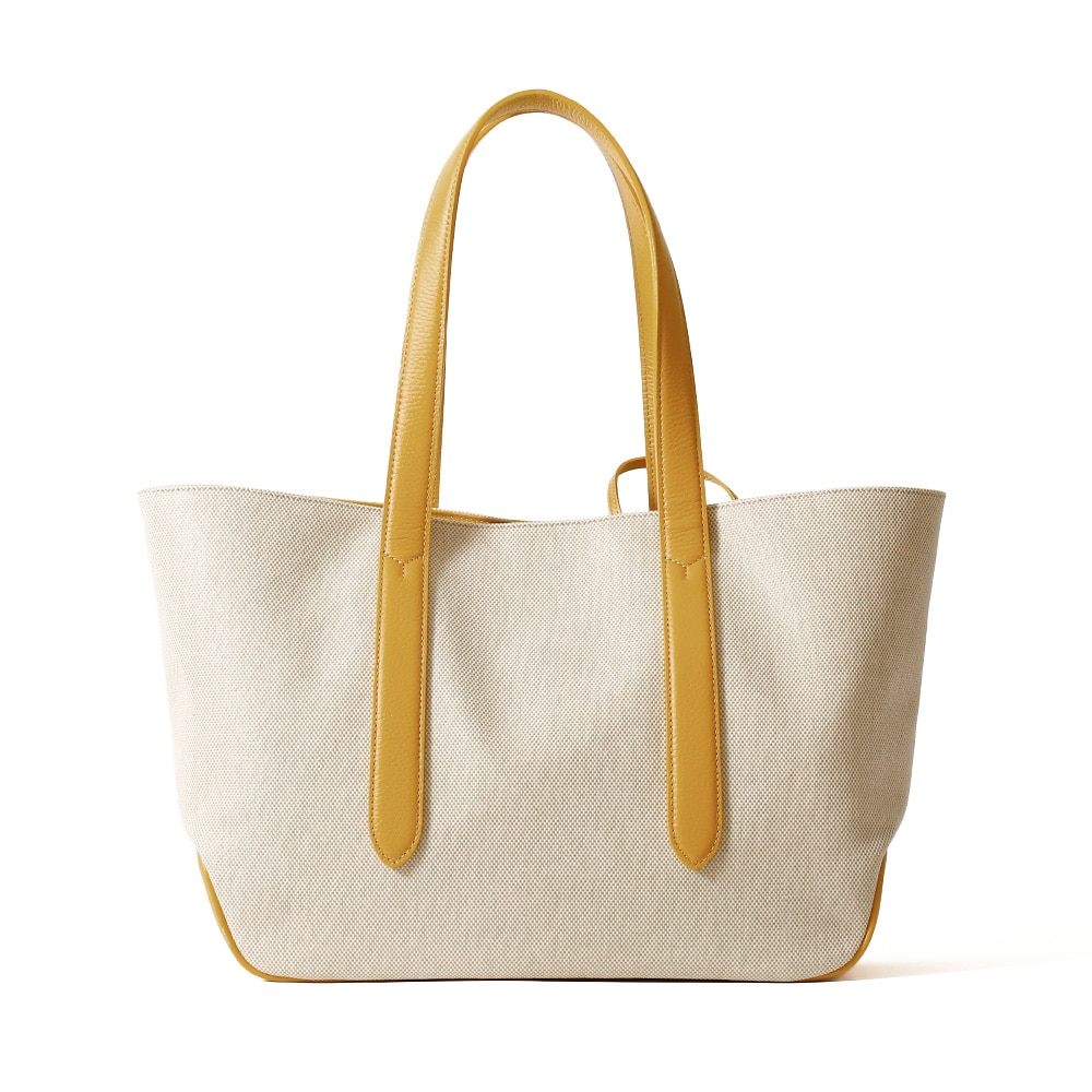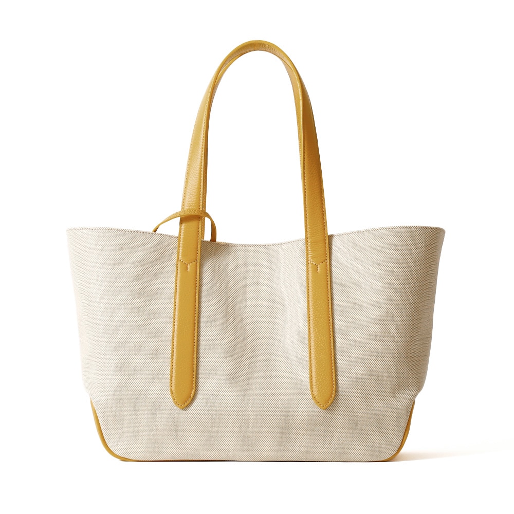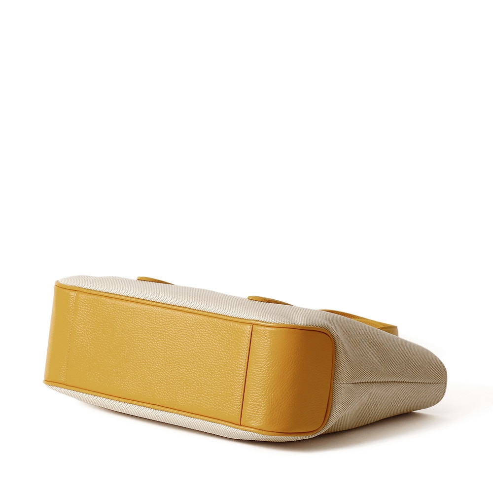 コットンキャンバス地にPVCコーティングを施すことで程良い艶感を出したデザイン。PVCコーティングにより防汚性を備えています。カジュアルシーンに重宝する春夏シーズンぴったりのトートバッグです。
