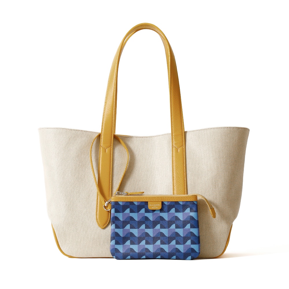 ジェンダーレスに持ちやすくなった従来のモデルをリサイズしたトートバッグ。ブランドアイコンらしい波型のポーチが付属。ストラップ付なので単独でもバッグ・イン・バッグとしても重宝します。