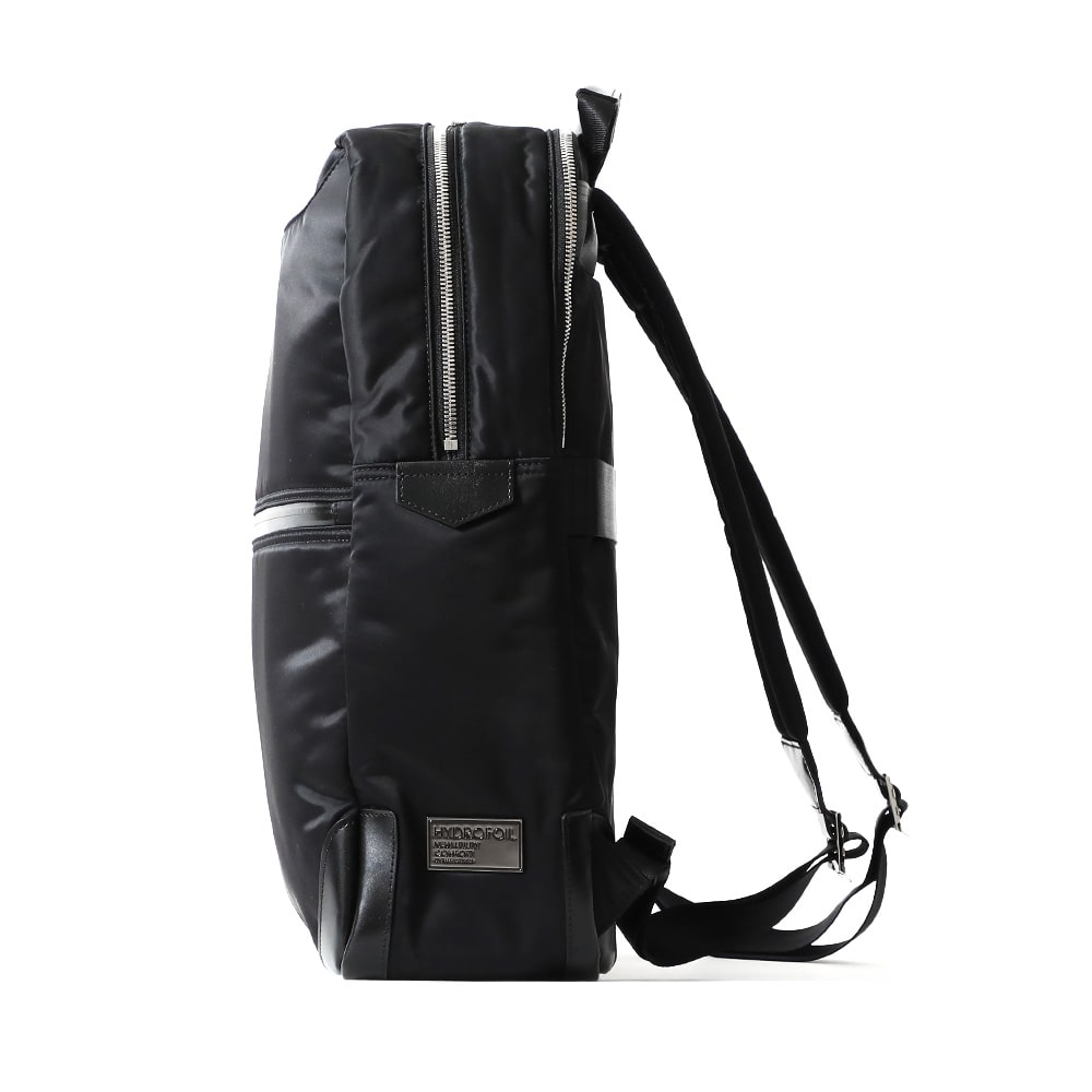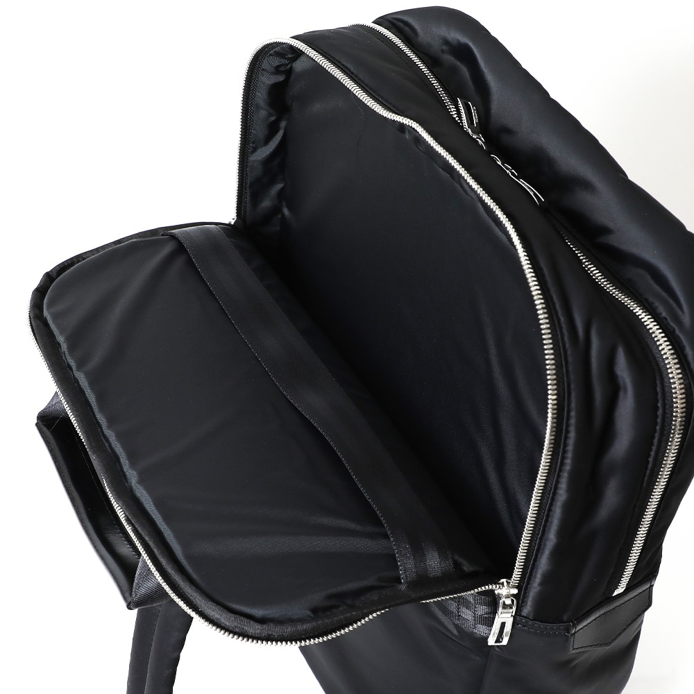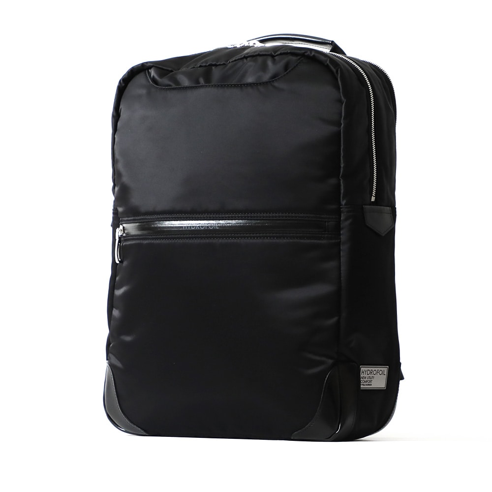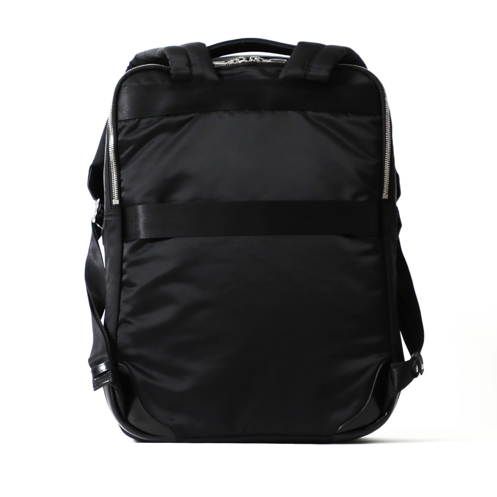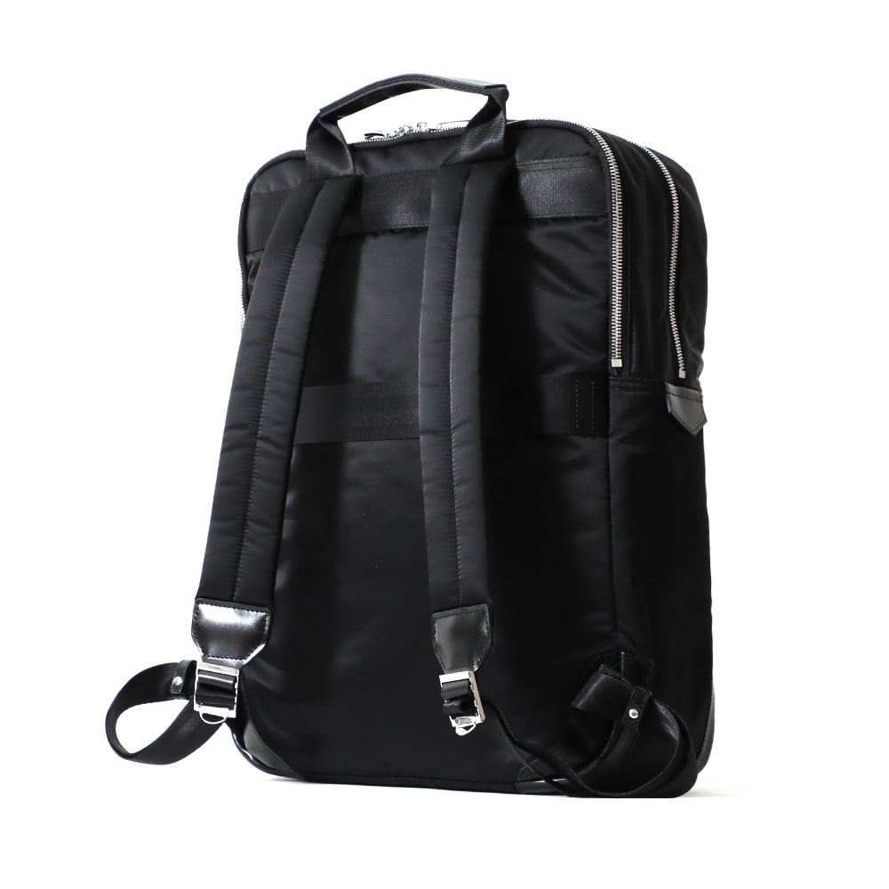 15インチのPCが収納可能なポケットが付いたバックパック。スクエアタイプのデザインなので書類などビジネスマンに欠かせないアイテムもしっかり収納できます。正面上部にはマグネット式のあおりボタンもあり、スマートフォンやカードケースなどすぐに取り出したい小物を収納できます。