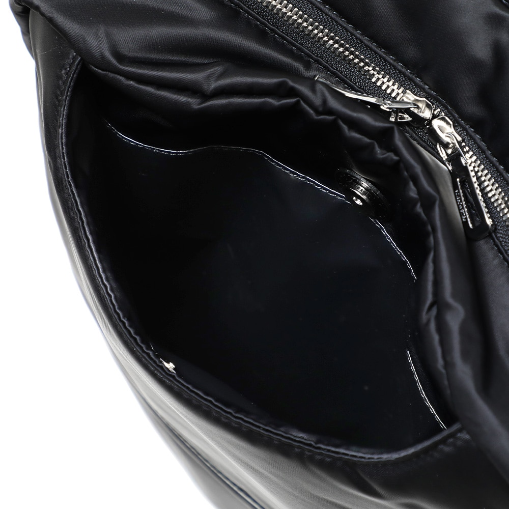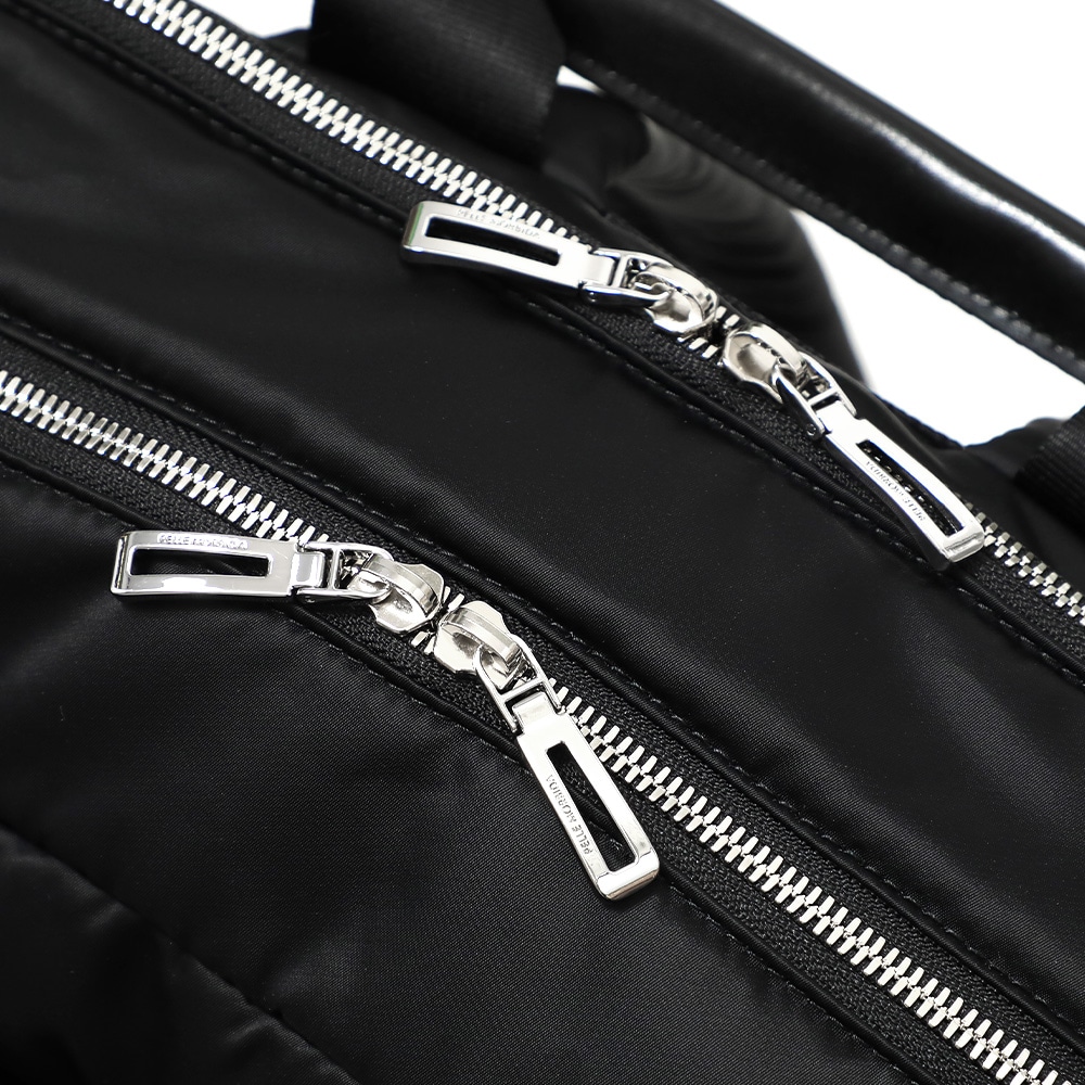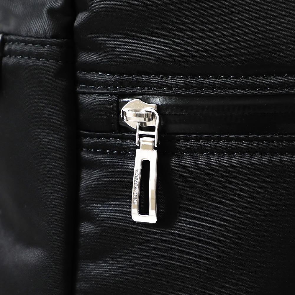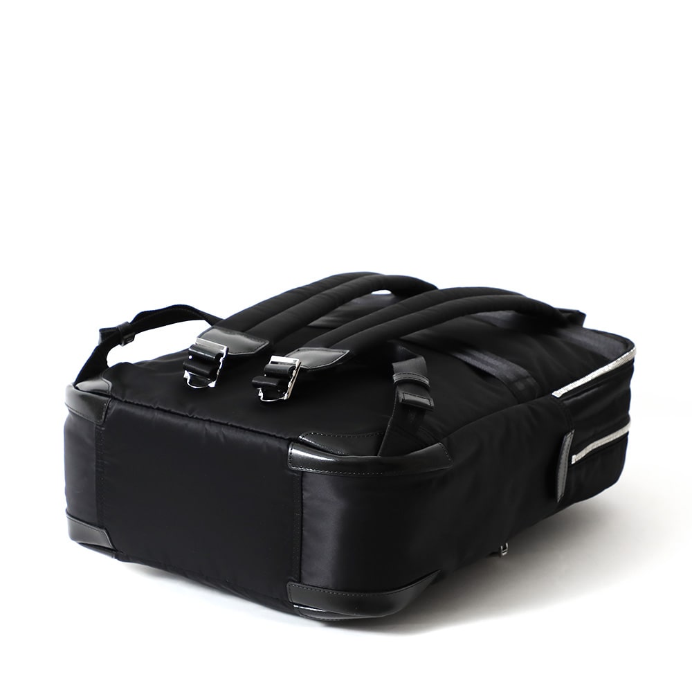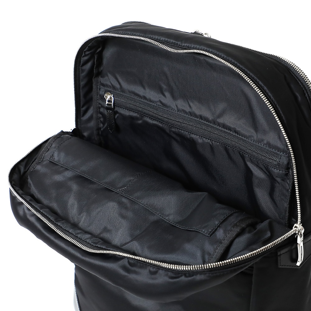 15インチのPCが収納可能なポケットが付いたバックパック。スクエアタイプのデザインなので書類などビジネスマンに欠かせないアイテムもしっかり収納できます。正面上部にはマグネット式のあおりボタンもあり、スマートフォンやカードケースなどすぐに取り出したい小物を収納できます。
