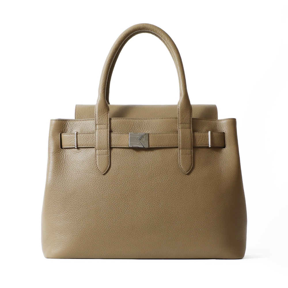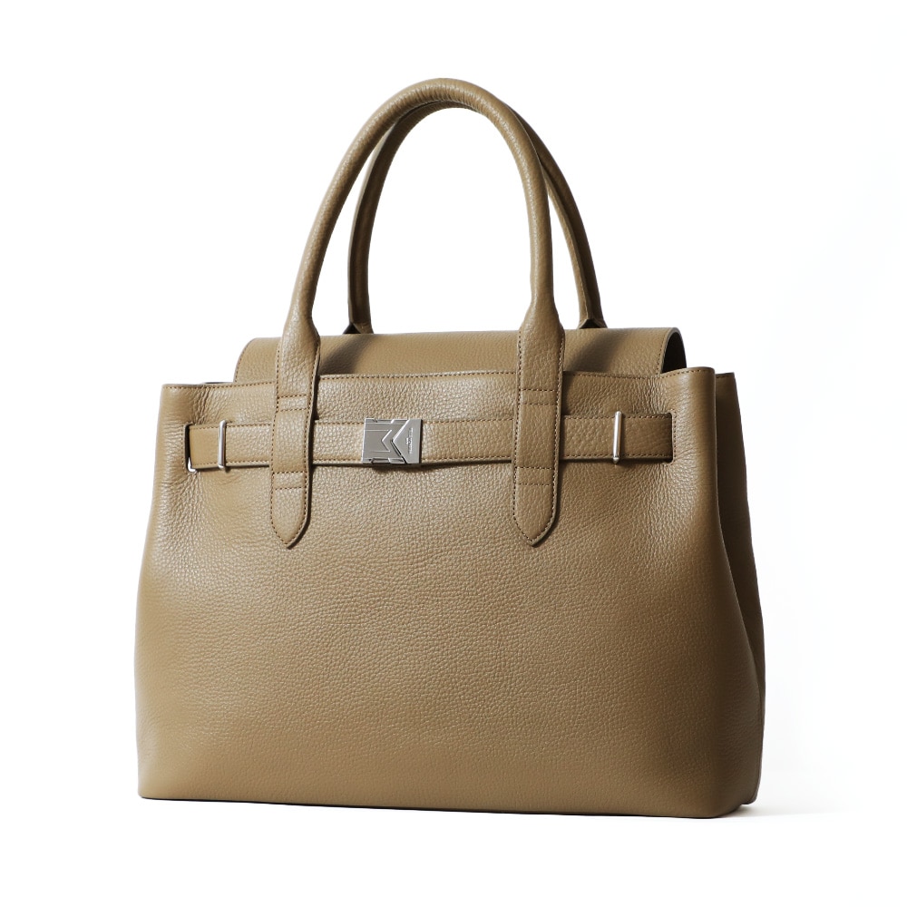 シュリンクの柔らかさを活かした、フラップトートバッグ