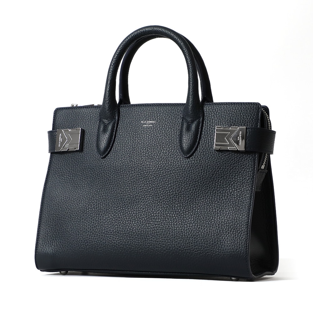 “完成した船(バッグ)が世に出ていく” というイメージから処女航海の名をつけた、ペッレモルビダのスタンダードライン。オリジナルレシピで開発したシュリンクレザーから生まれる、シンプルでシックなシリーズ。