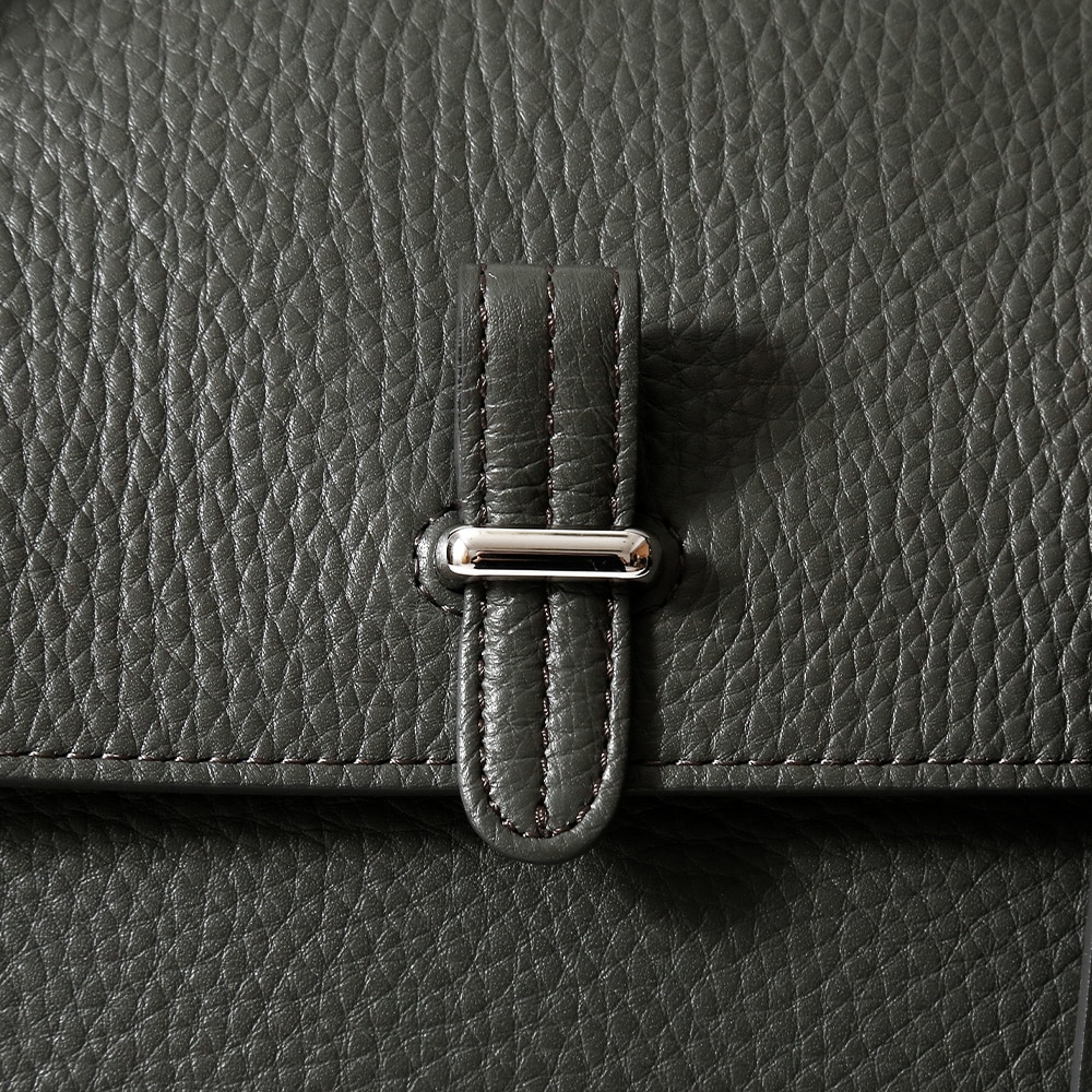 現代のビジネススタイルに合わせやすいフラップ型のビジネスバッグが登場しました。フォーマルな雰囲気を出せるようハンドルを短くデザイン。移動には便利なショルダーベルトを付けることで、フットワークが軽くなるビジネスマンには嬉しいアイテムです。