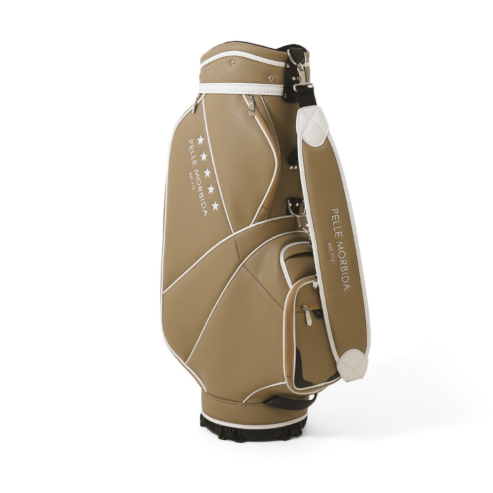 新たに生まれ変わった PELLE MORBIDA GOLF より、キャディバッグが登場。刷新されたロゴに刻まれた5つの星は、世界中のホテルやレストランの格付けにおける「最高級」を象徴。その輝きには、最高のデザイン・品質・サービスを追求するブランドの想いが込められています。