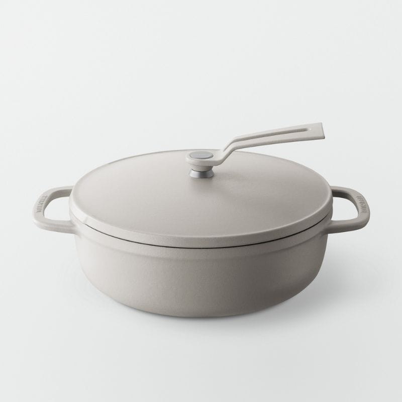 理想的な無水調理はそのままに、瞬間蒸発性能が加わり、焼き付け性能が進化したオーブンポット2。浅型タイプは、無水ベイクや炒め調理、塊肉の焼き付けなど、瞬間蒸発性能をさらに活かすために誕生しました。