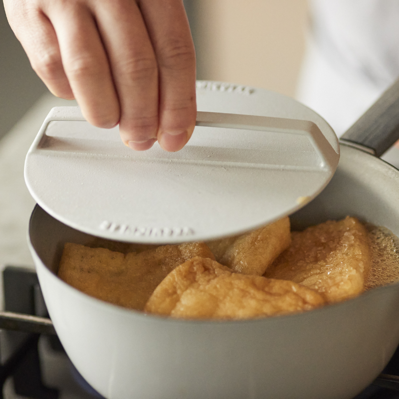 バーミキュラ ユキヒラと、ドロップリッドを併用することで、食材を香ばしく焼き付けながら、旨みを閉じ込めます。食材の旨みが凝縮した水分を活かして蒸し焼きや煮炊きをすることで、慣れしたんだ家庭料理が、これまでにない食感と味わいに生まれ変わります。