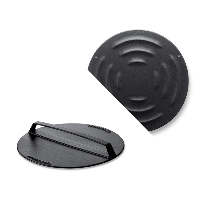 蓄熱性が高い鋳物だから、熱を逃がさず、鍋の中の温度を一定に保つことができるので、煮込み時間の短縮にも繋がります。また、適度な重さがあるので、ミートプレスとしても活用できます。