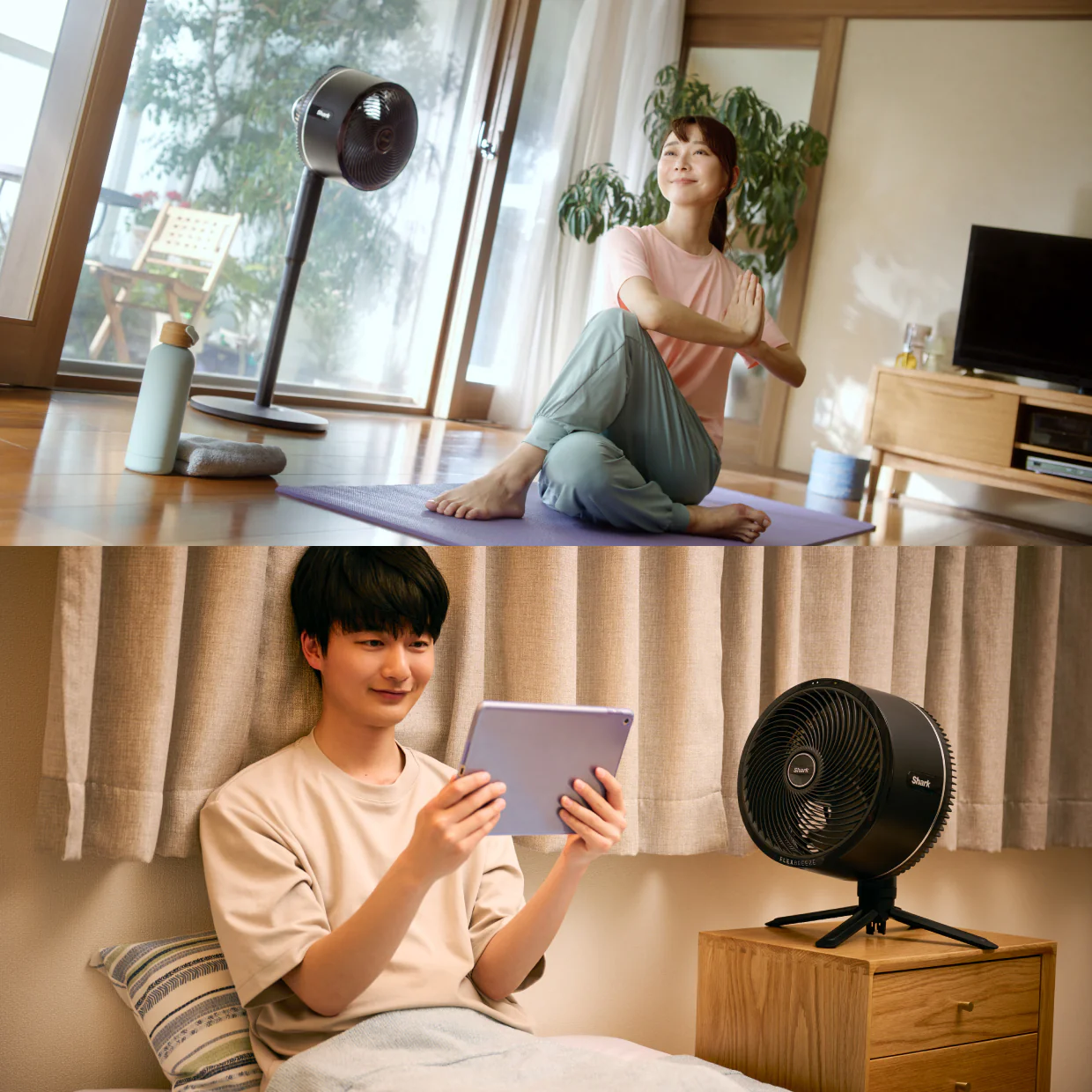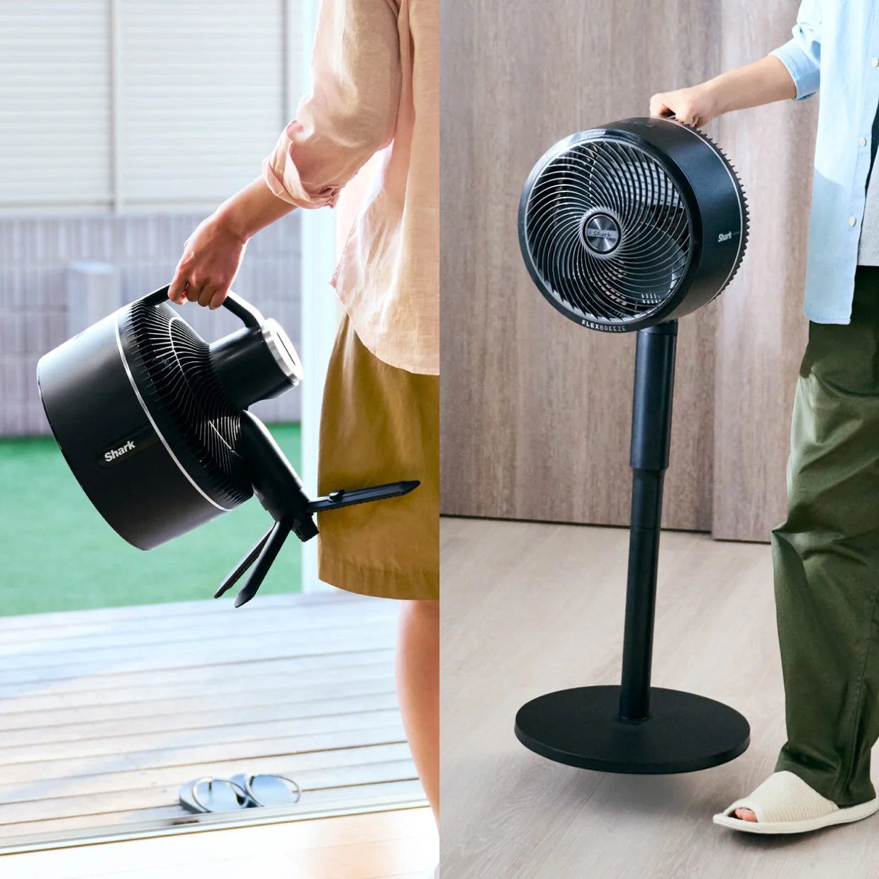 スタンドから本体をボタンを押して取り外し、四脚を開いてそのまま使えます。持ち運びに便利で、低い位置で風を送ったり机の上で使ったり用途が格段に広がります。