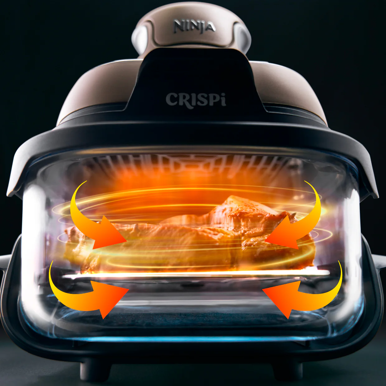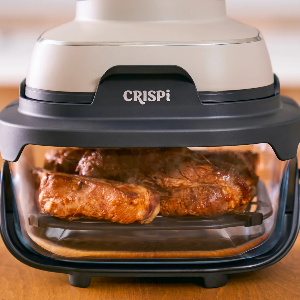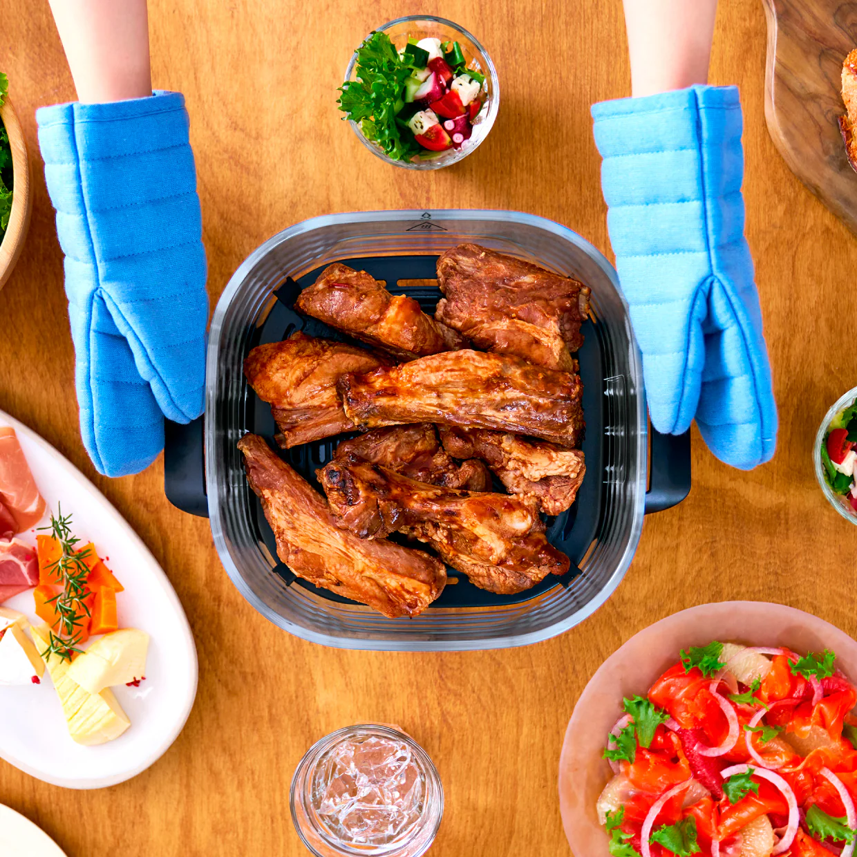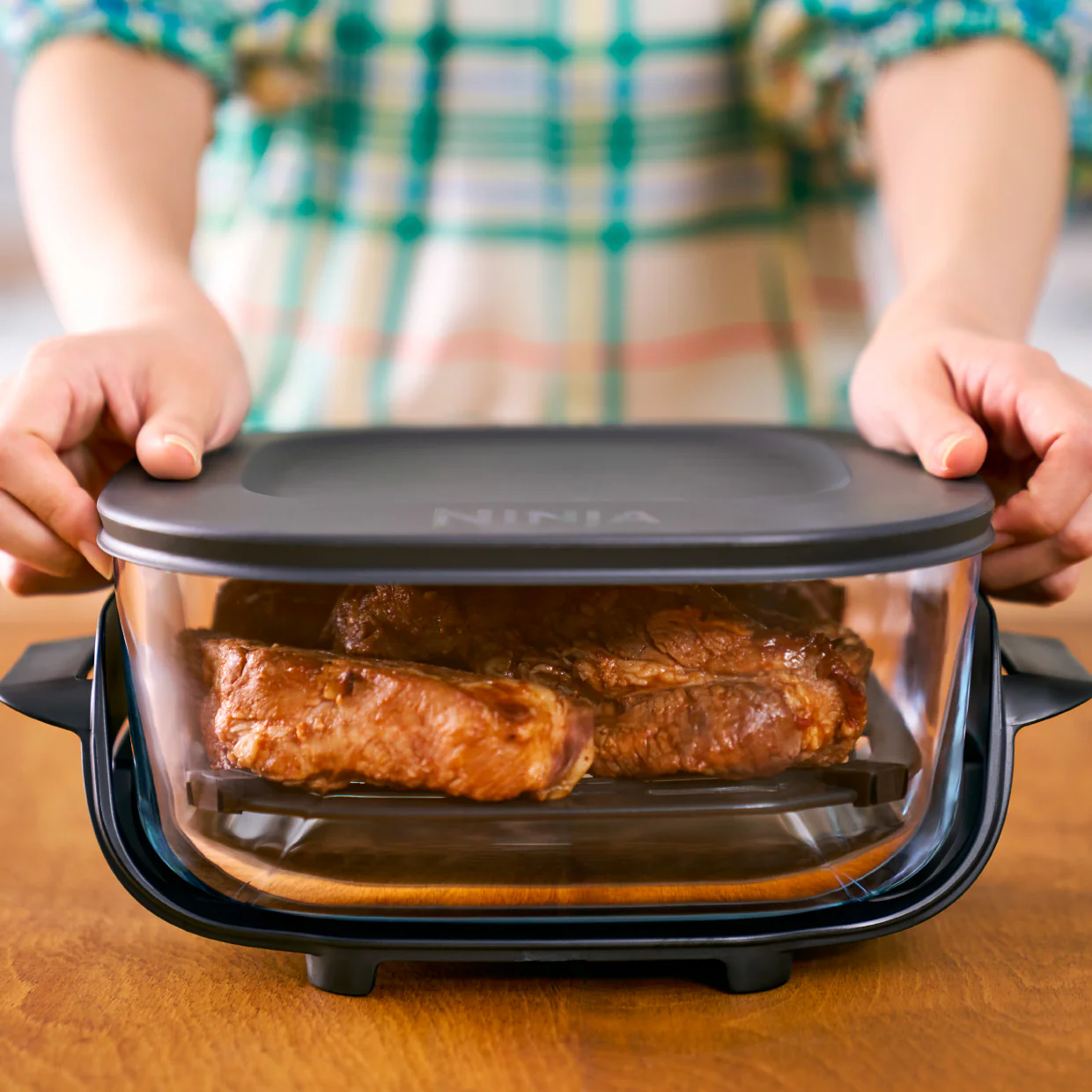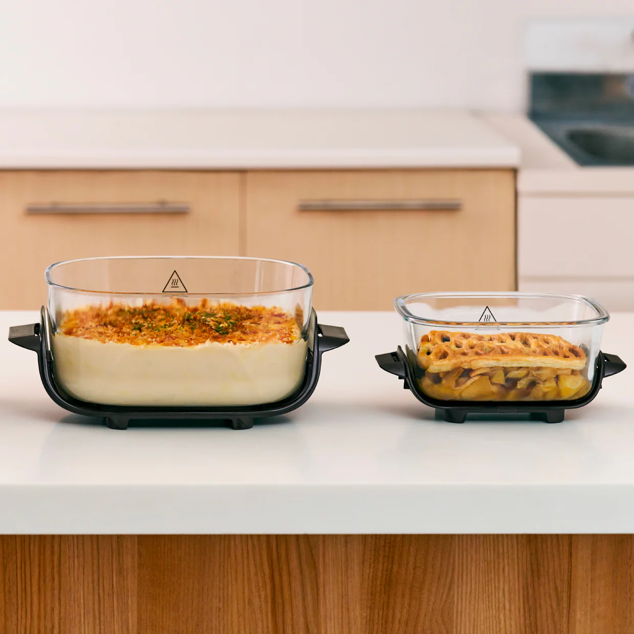 ガラスコンテナに食材を入れて、そのまま調理、サーブし、保存もできる新感覚テーブルクッカー。強力熱風、高火力、高熱伝導プレートで食材を包み込み、むらのない本格的な仕上がりに。
