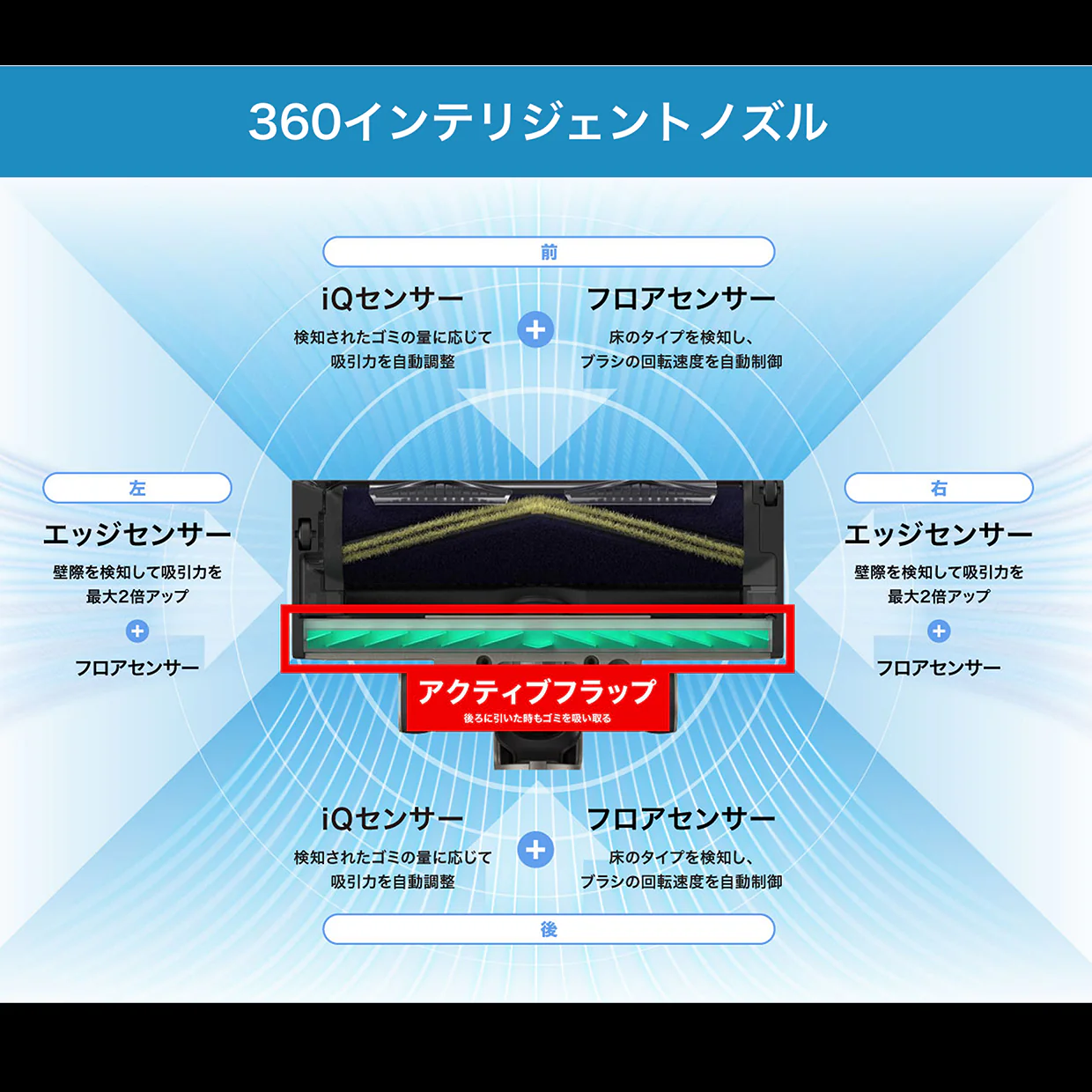 | 運転時間 | コードレススティック(ブーストモード):約7分 コードレススティック(iQモード):約7~38分 コードレススティック(エコモード):約38分 ハンディ(ブーストモード):約8分 ハンディ(iQモード):約8~45分 ハンディ(エコモード):約45分 |