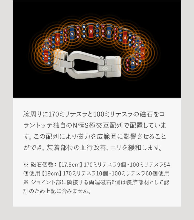 - フェライト永久磁石170ミリテスラ9個・100ミリテスラ54個をN極S極交互配列