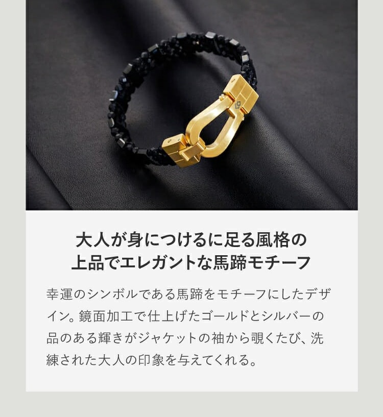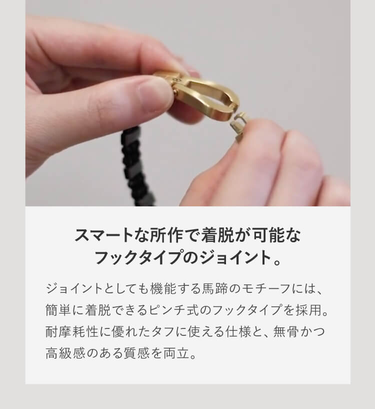 コーディネートに気品と高級感をプラスする馬蹄モチーフが手元を彩ります。