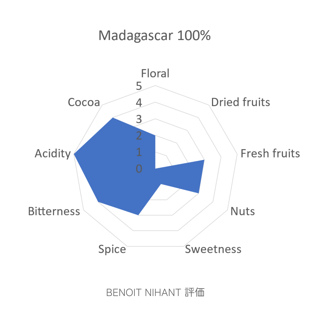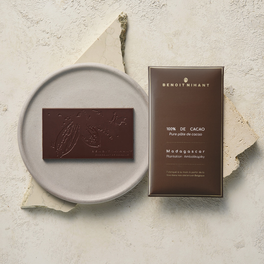 アンボリカピキィ農園のカカオ豆を使用。あえて砂糖をせず、マダガスカル産カカオ豆の苦味をダイレクトに感じられるビターチョコレートです。