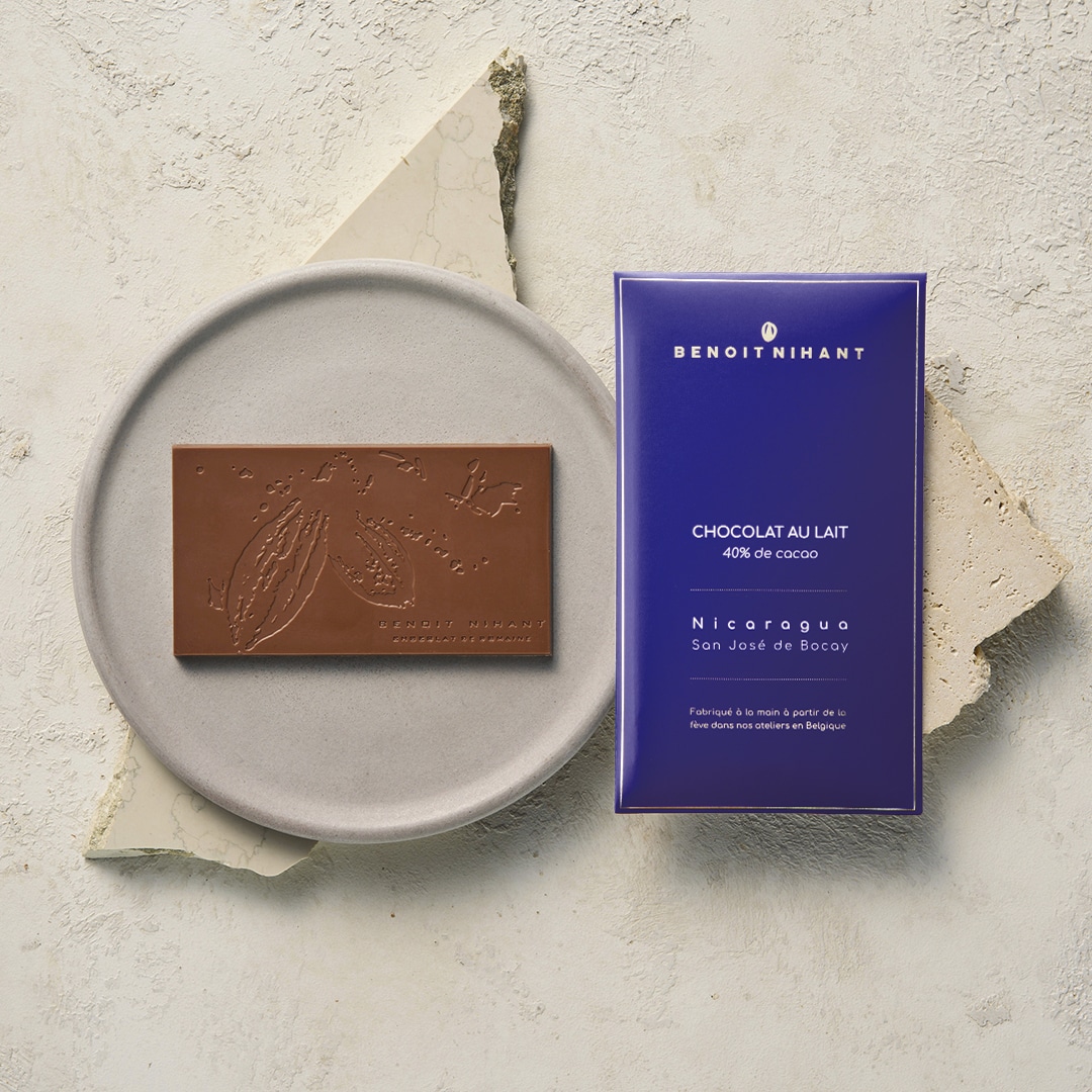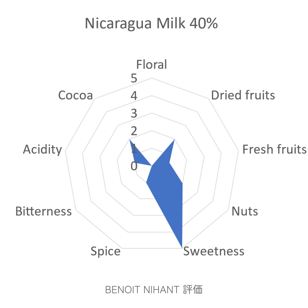 ニカラグア共和国産カカオ豆から作られたミルクチョコレートは、キャラメルやバターのような甘みのある香り、トフィーのような香ばしさが特徴。まろやかでリッチな味わいです。