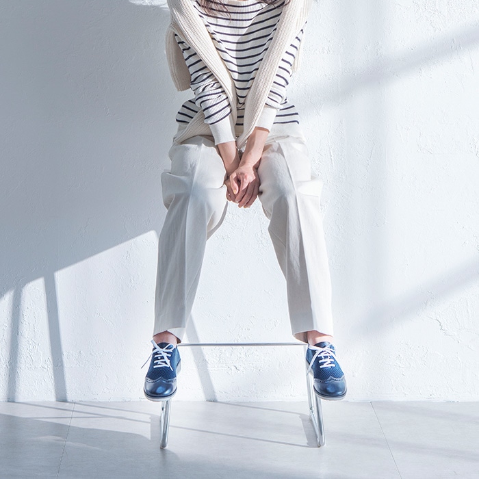 ・カジュアルで心地よいニットを使用しながら、つま先のウィンチップが「きちんと感」を与えてくれます。