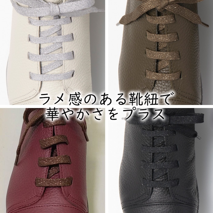 ラメ入りキラキラ感のある靴ひもが、スポーティーなスニーカーに華やかさをプラスし、お洒落で女性らしい印象をあたえます。