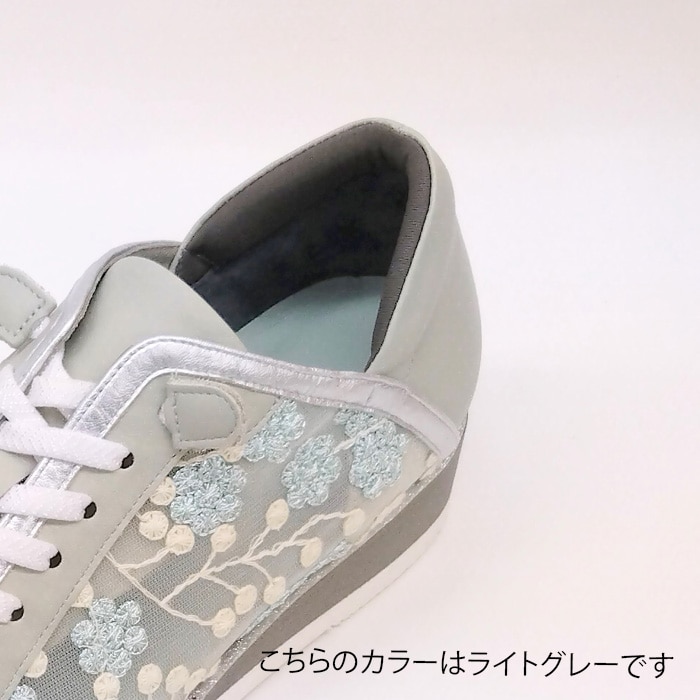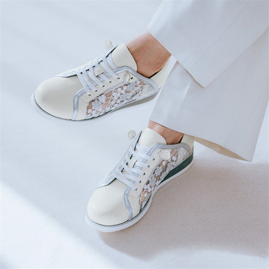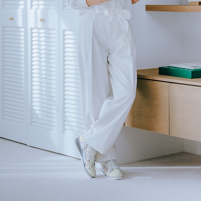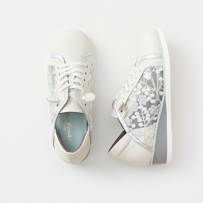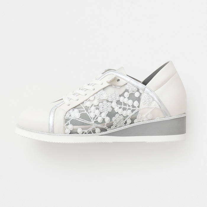 華やかなラメ入り花柄チュールレースをあしらった、エレガンスが薫り立つスニーカー。