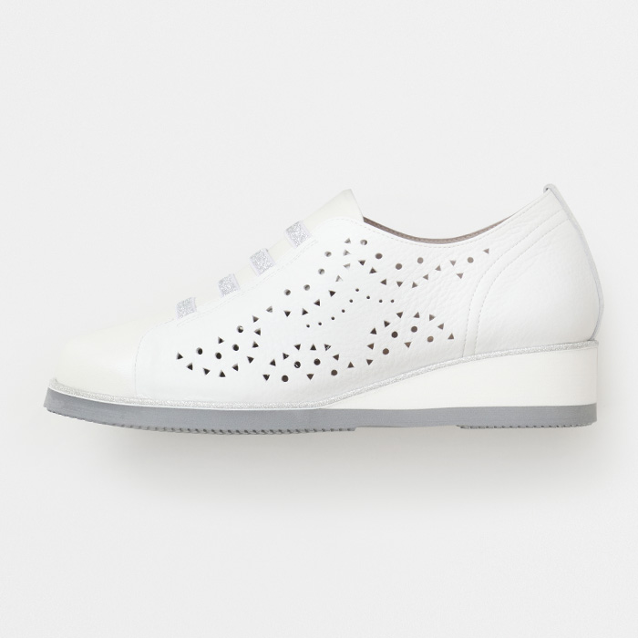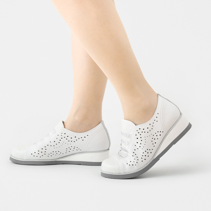 ・革を貫通させてカット技術で、レース柄をあしらっています。通気性を高め、暑い季節でも快適に履いていただけます。