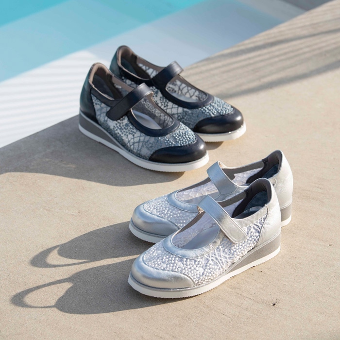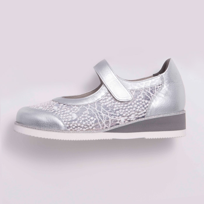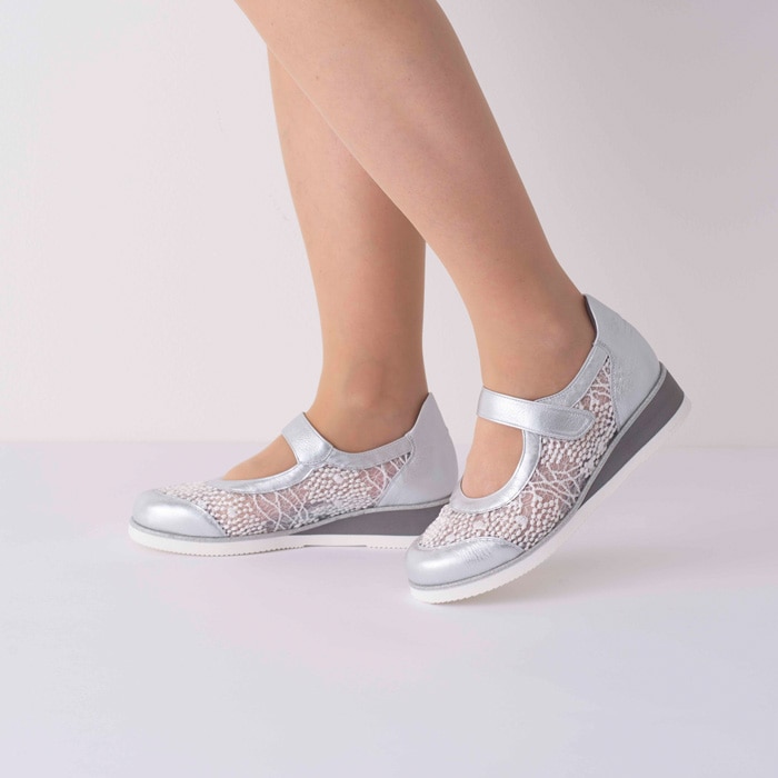 クラシックなメリージェーンに美しいチュールレースと光沢感のある牛革を合わせ、愛らしい印象に仕上げました。