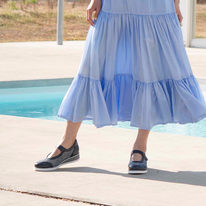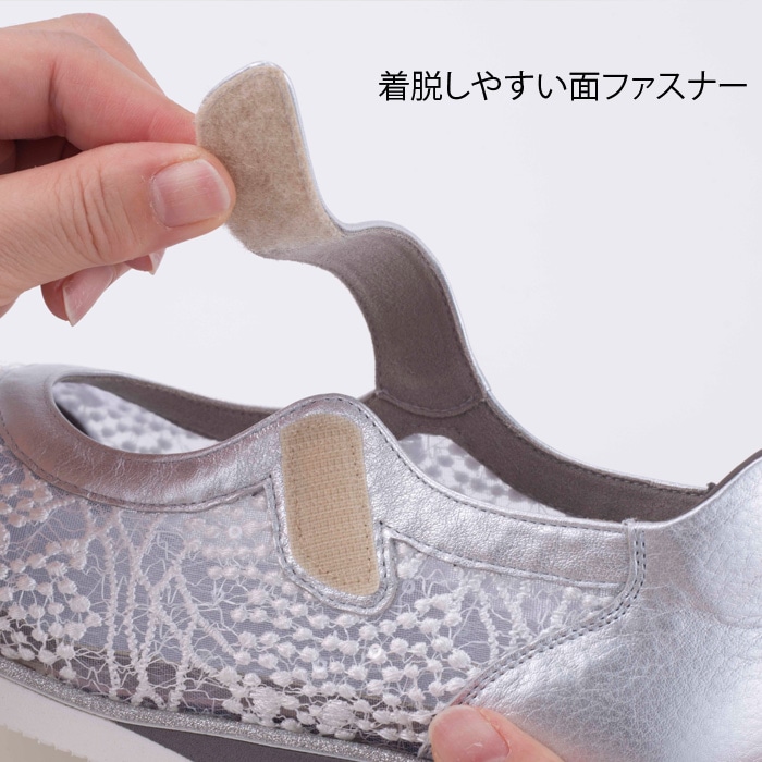 ベルトは面ファスナー仕様で、足にあわせて細やかに調整していただけます。