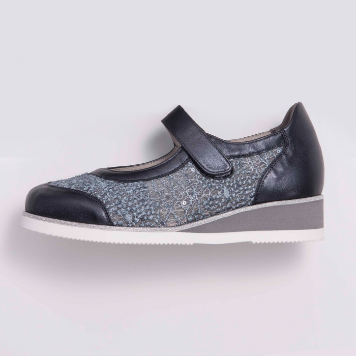 クラシックなメリージェーンに美しいチュールレースと光沢感のある牛革を合わせ、愛らしい印象に仕上げました。