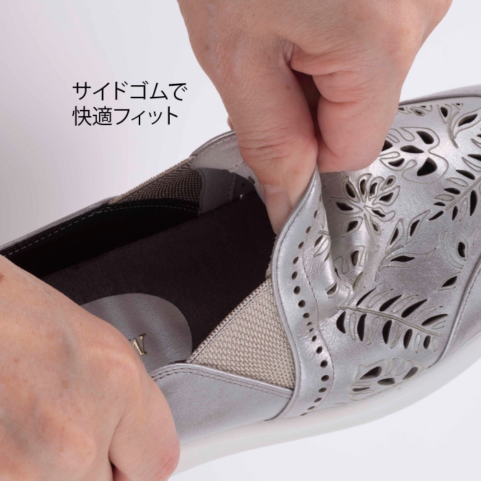履き口のサイドゴムにより、手間なくサッと履いていただけます。