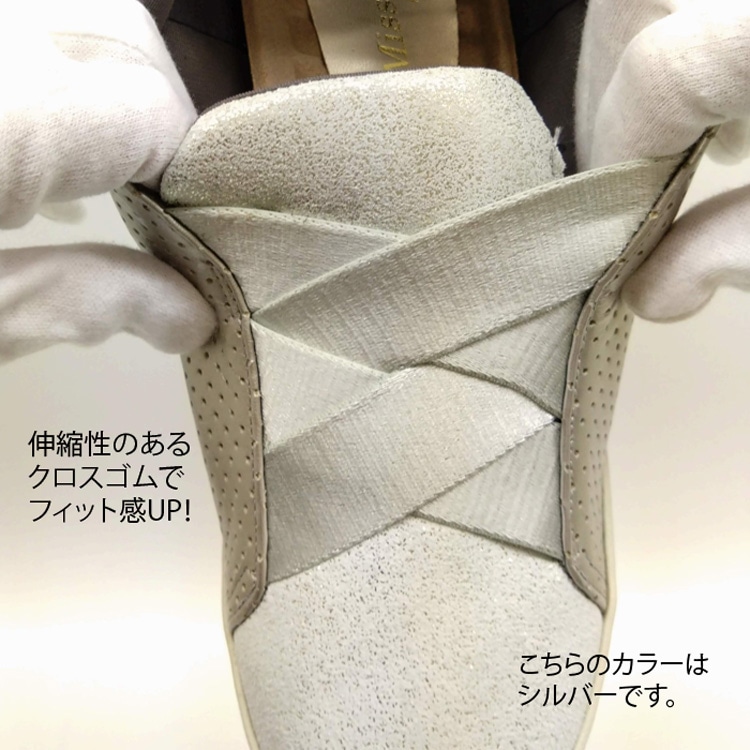 ・サイドがパンチング革で甲部つま先はラメ加工の革を使用。今までのクロスゴムシリーズとは一味ちがう表情です。