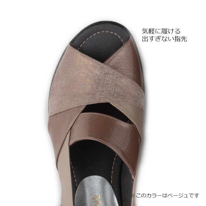 サンダルでありながら、踵はしっかり隠し、つま先も出すぎないデザインが人気です。