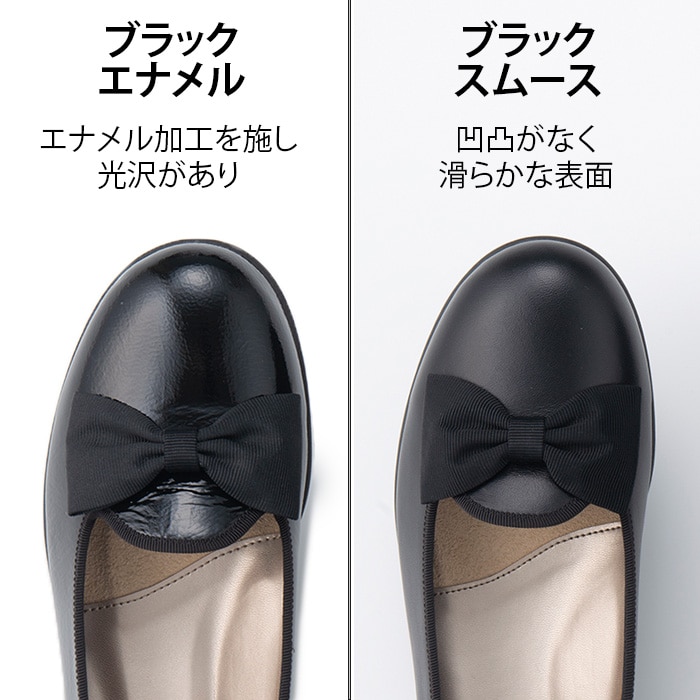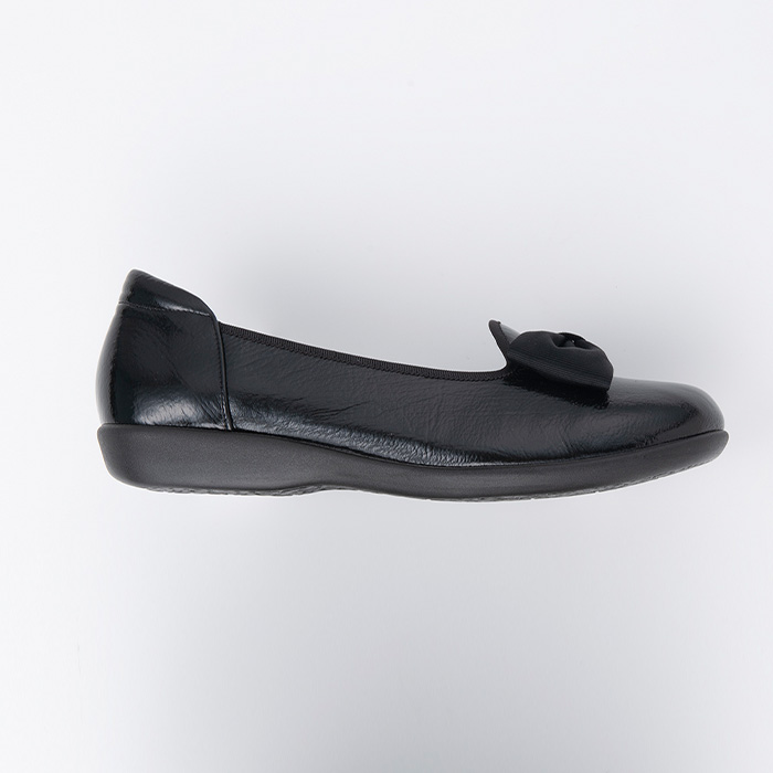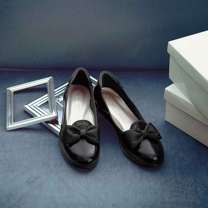 高級感のある牛革エナメル素材(ブラック・ボルドー)を使用し、上品さの中に大人可愛い印象を醸し出すシューズです。