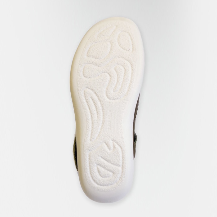 さらに柔軟性と滑りにくさを改善した発泡性もソフトポリウレタン製靴底で軽さとクッション性も向上しました。