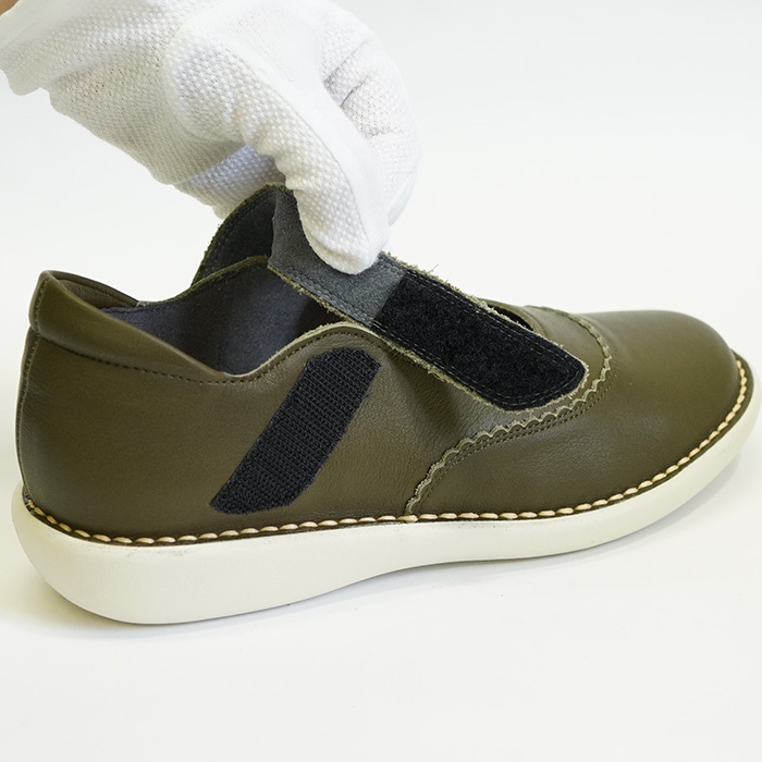 面テープを外すと履き口が広いので、履きやすくストラップも内側にゴムがあるので優しくホールドしてくれます。