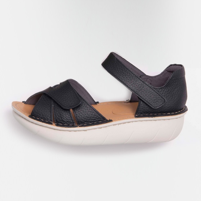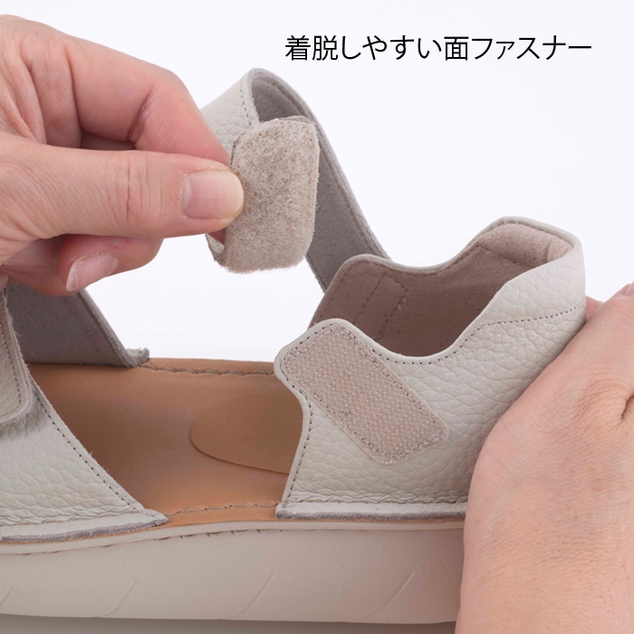 足首周りと甲部分のベルトは面ファスナー仕様で、足にあわせて細かくサイズ調整していただけます。