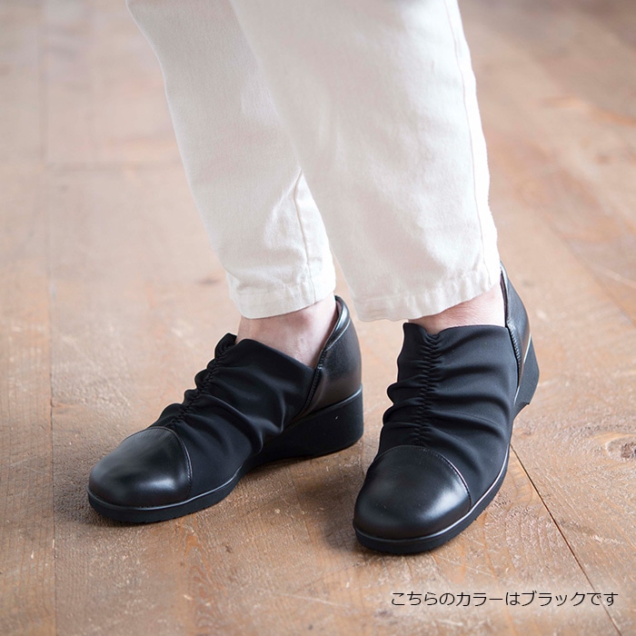 ストレッチの伸縮に優れたデザインの為、甲高幅広の方にもお履きいただけます。
