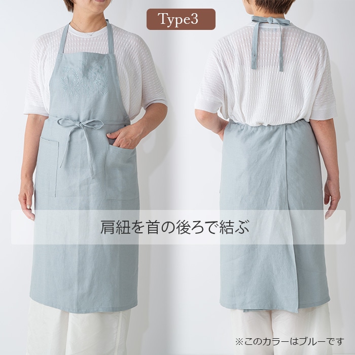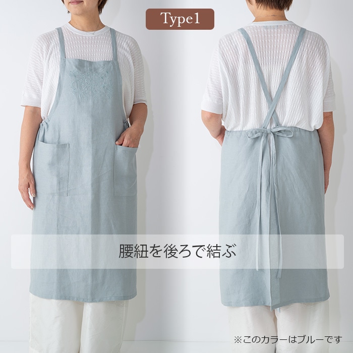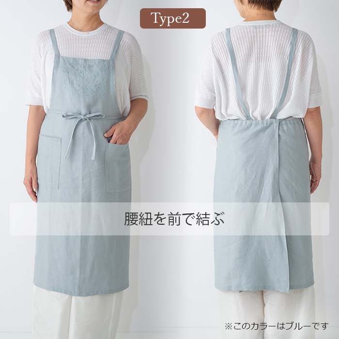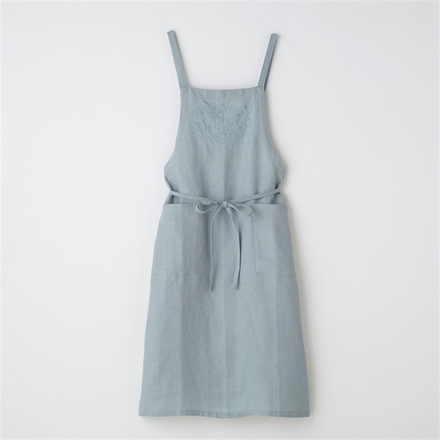 サラッとした肌触りの綿麻素材に繊細な刺繍を施して高級感が溢れるデザインのエプロンです。