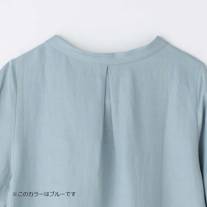 袖口にギャザーをよせて絞り込んでいる6分丈なので、家事や作業時に邪魔にならず、女性らしい優しいシルエットになってます。