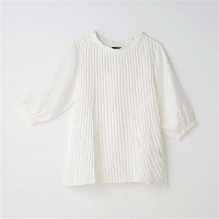 胸元のピンタックはシンプルになりがちなトップスにアクセントをつけ、高級感を出すデザインです。